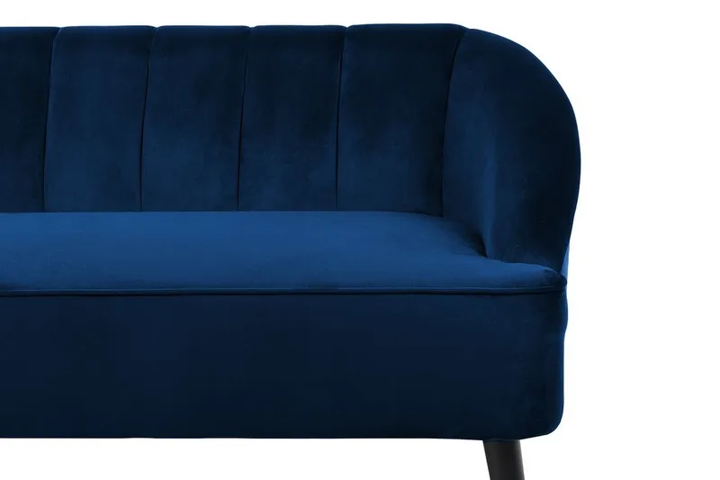 Stilig soffa i sammet. Den här soffan är glamorös i designen och blandar perfekt en exklusiv look med komfort – en fantastisk känsla för alla rum. Dess kurvformade och behagligt plyschiga rygg visar kanaltuftning, vilket inbjuder dig att ta en stund och luta dig tillbaka bekvämt. De försänkta armarna och den enkla fasta sitsens finish avrundar utseendet, vilket ger denna 3-sitsiga en ren, modern känsla, som dessutom förstärks av ben i mörkt gummiträ.