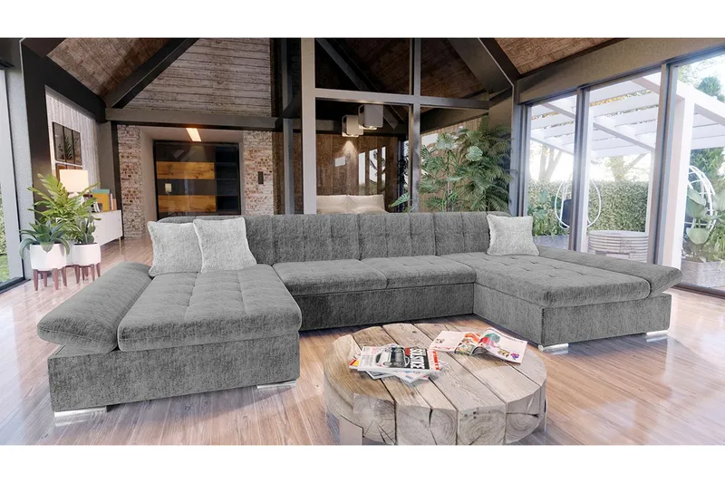 Dewitt Bäddsoffa med Divan och Schäslong är en perfekt kombination av stil och funktionalitet. Denna U-formade soffa ger dig gott om sittplatser och kan enkelt förvandlas till en bekväm bädd när det behövs.