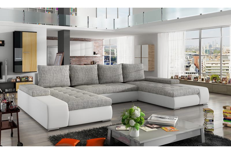 Med sin vita färg och ljusgrå/vita detaljer ger denna bäddsoffa ett fräscht och stilrent intryck i rummet. Den är tillverkad av tyg, plast, trä, PVC och foam för att ge bästa möjliga komfort.