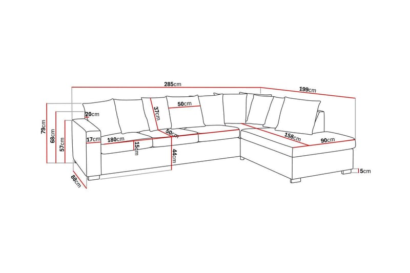 Basic Home Crazy 4-sits Högervänd L-formad Schäslongsoffa i Tyg inkl Kuvertkuddar Mörkgrå