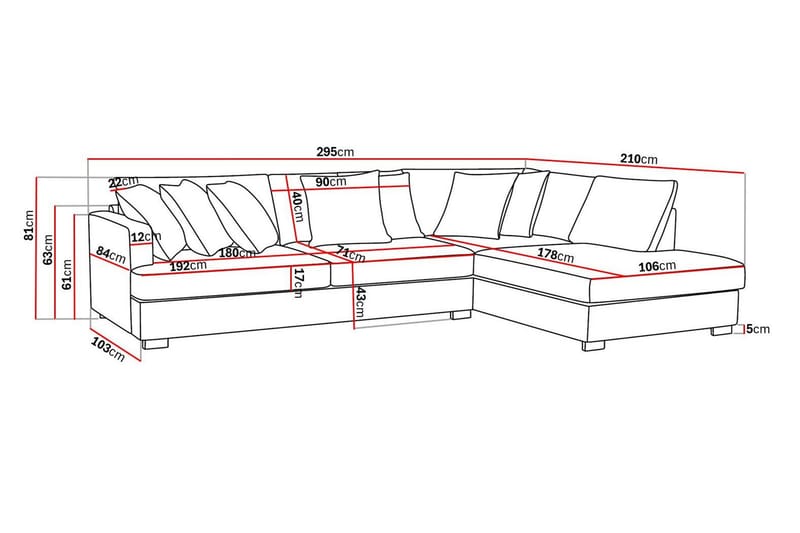 - Mått: B:295 cm H:81 cm D:103 cm