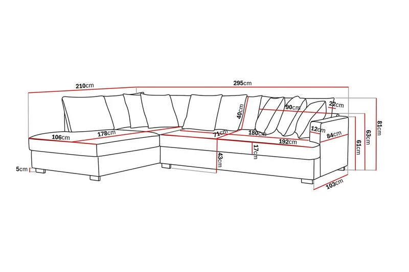 Scandinavian Choice Rossita 4-sits Vänstervänd L-formad Djup Schäslongsoffa med Hel dyna i Tyg Brun