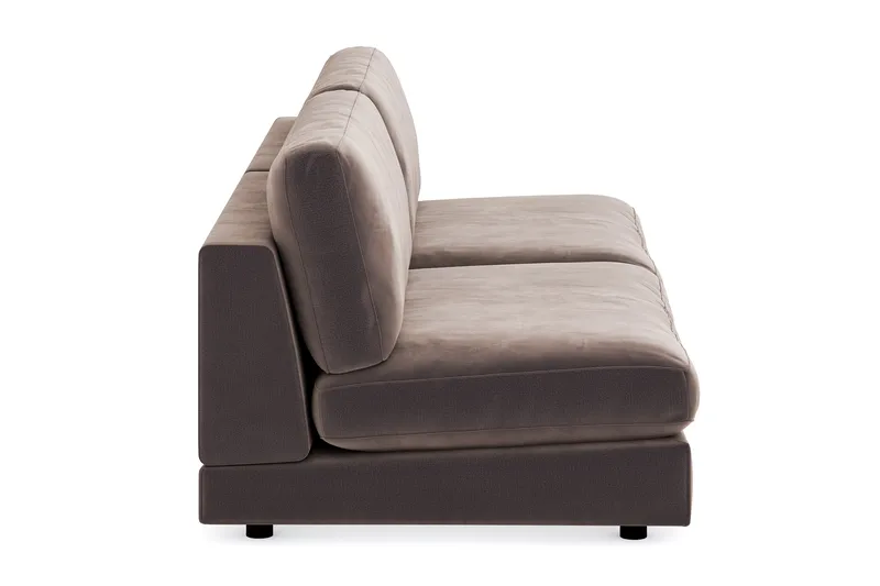 Arken är en serie soffmoduler som både erbjuds i färdiga soffkombinationer och som enskilda moduler. Det här är en 3-sits soffa bestående av två mittmoduler klädda i lyxigt sammetstyg.