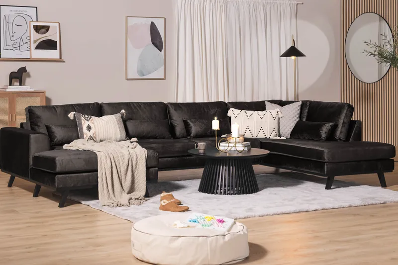 Scandinavian Choice Copenhagen 5-sits Högervänd U-formad Soffa med Divan och Schäslong i Sammet Mörkgrå