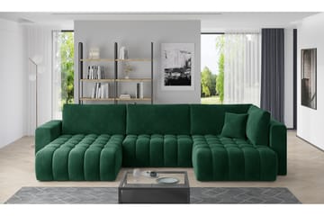 Clair 3-sits Bäddsoffa med Schäslong Ställbar Sammet/Grön/Tr