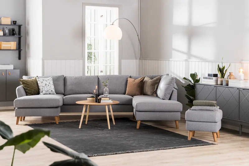 Scandi Days Trend 4-sits Högervänd U-formad Soffa med Divan och Schäslong i Tyg Grå