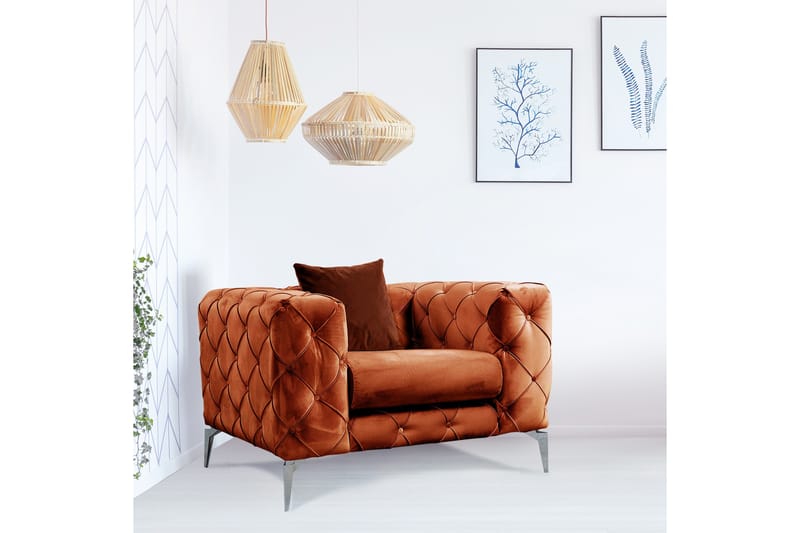 Sobrecedo fåtölj i färgen orange är en modern och stilren möbel som kommer att bli en fantastiskt tillskott till ditt hem. Den är tillverkad med en klädsel av 100% polyester, vilket ger den en mjuk och skön känsla. Fåtöljen har silverfärgade ben som ger den en elegant touch.