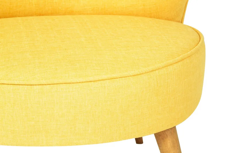 Denna retroinspirerade fåtölj är en perfekt kombination av stil och komfort. Med sin gula färg och unika design kommer den definitivt att bli ett iögonfallande inslag i ditt hem.