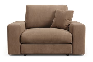 Den bruna färgen på fåtöljen kan påverka rummets estetik på flera sätt. För det första kan den ge en varm och inbjudande känsla till rummet. Den bruna färgen kan också skapa en känsla av naturlighet och jordnära toner, vilket kan bidra till en avslappnad atmosfär.