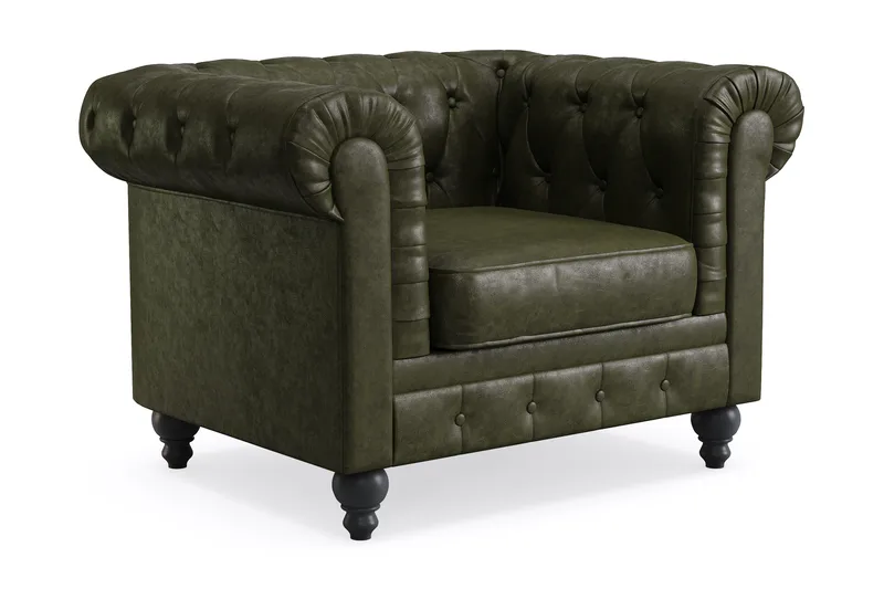 Manor House Chesterfield Lyx Stor skön djup fåtölj till vardagsrum M örkgrön PU