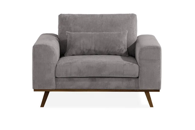 Copenhagen är en trendriktig fåtölj med ett modernt formspråk. Fåtöljen har en slitstark manchesterklädsel, ett behagligt sittdjup och tack vare den mjuka stoppningen av polyeter är sittkomforten utmärkt. De breda armstöden som ger tyngd åt designen fungerar dessutom fint som avställningsyta. Det ingår även en kuvertkudde som är bra svankstöd och bidrar ytterligare till komforten. Fåtöljen vilar på en stabil träram som bärs upp av modernt vinklade ben.