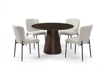 Matgrupp Bark Kopparbo Runt Stort Matbord 180 cm Svart med 4 Sawako Greige Stolar Svart|Greige