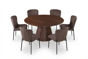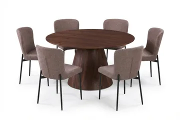 Siena Matgrupp runt 150 cm Valnöt med 6 Elsie Matstolar