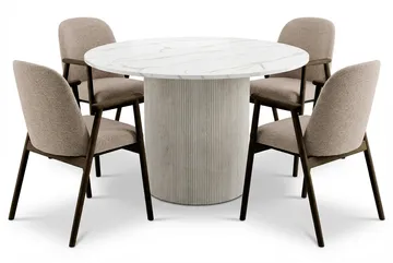 Uppveda Matbord 120 cm Runt Vitt med 4 Sawako Greige Stolar