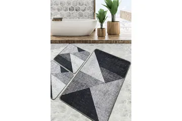 Badrumsmattset (2 delar) Sufia Grå / Ljusgrå / Vit