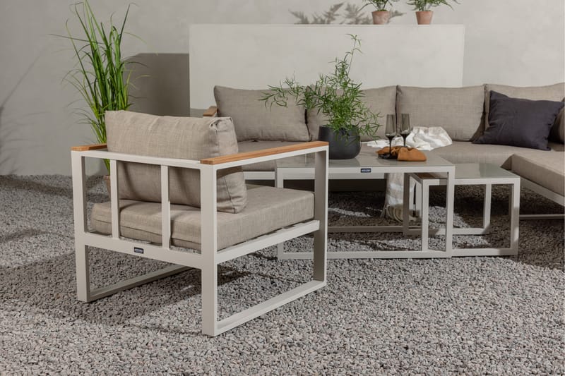deNoord Aspvik Stor Loungegrupp Utomhus – 7-sits Loungeset i Aluminium Grå / Beigea dynor