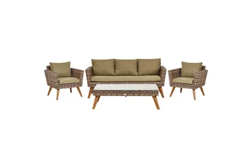 Loungegrupp med bord Vittoria Beige/grönt/mörkt trä, 5-Sits