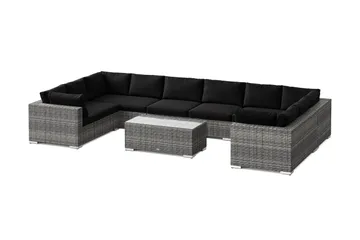 Bahamas U-formad utomhus loungegrupp med öppet avslut, 9-sits med bord och hylla