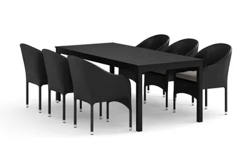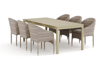 Tunis utomhus matgrupp förlängningsbart 205/305x90 cm med 6 Thor fåtöljer