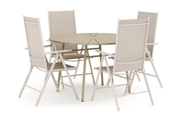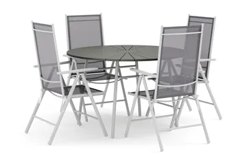 Tunis utomhus rund matgrupp 120 cm med 4 Maggie positionsstolar