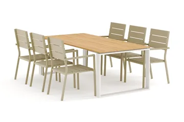 Devon utomhus matgrupp 210x100 cm med 6 Tunis stapelstolar