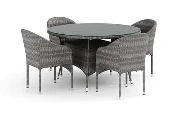Thor utomhus rund matgrupp 140 cm med 4 Thor fåtöljer