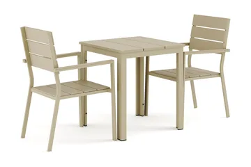 Tunis utomhus caféset 70x70 cm med 2 Thor fåtöljer