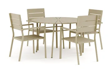 Tunis utomhus rund matgrupp 120 cm med 4 Tunis stapelstolar