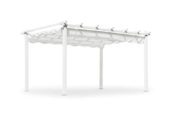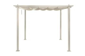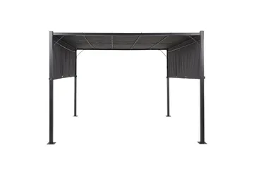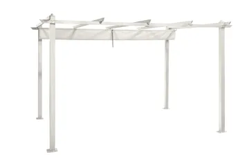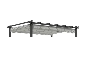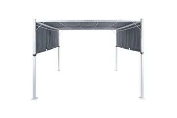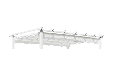 Vissa pergolor kan kompletteras med tak i väv som går att ta av vid behov. Det finns även möjlighet att använda sidoväggar eller förhängen för att minska vind, beroende på hur pergolan står placerad.