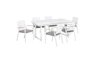 Trädgårdsmöbelset Olbia 6-sits Krämvit/svart/ljust trä