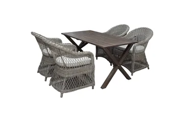Utomhusmöbelgrupp 150 cm Bord & 4 Levanto grå stolar Brun