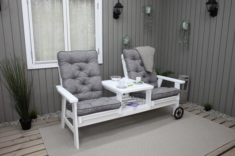 Denna utebänk är tillverkad av tall, vilket ger den en robust och hållbar stomme. Den är konstruerad för att klara av att användas utomhus och är vattenavvisande, vilket gör den idealisk för att stå emot olika väderförhållanden.
