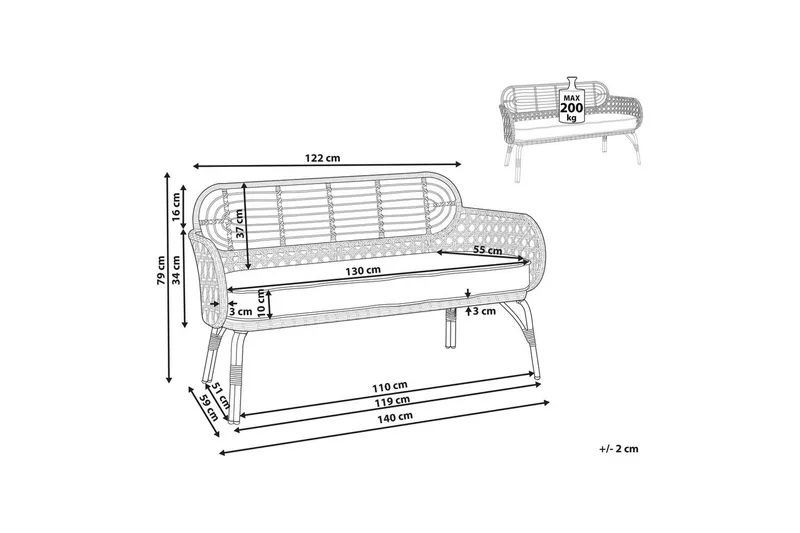 • Sittande yta (cm): 130x55x10