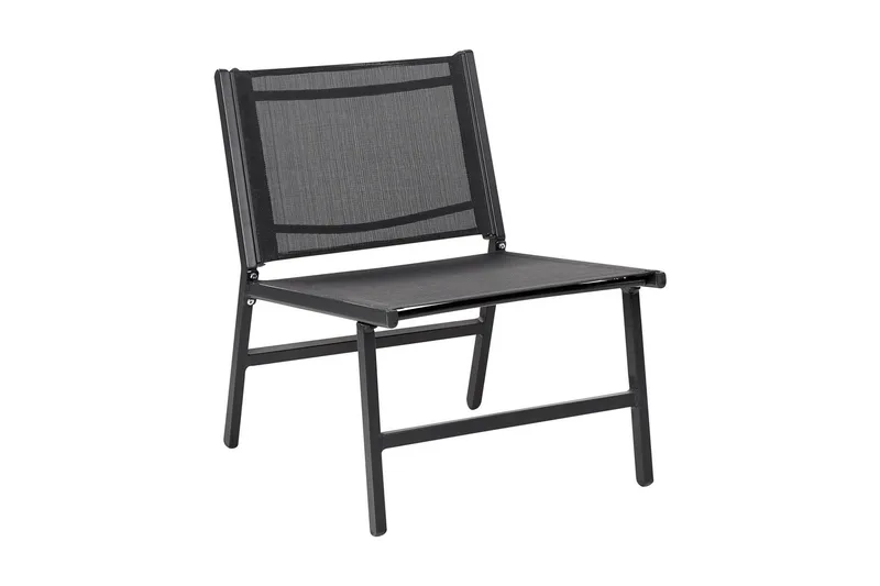 Utomhusstol med fotpall i textilene. Uppdatera ditt utomhusutrymme med denna trädgårdsstol med fotstöd, perfekt för avkoppling och solbad under varma dagar. Den är tillverkad av slitstarkt, lättskött aluminium och textilene, vilket gör demn idealisk för både trädgård och uteplats. Dessa stolar är motståndskraftiga mot UV-strålning, vatten och olika väderförhållanden. Den eleganta svarta färgen gör att den enkelt kan matcha en mängd olika moderna inredningsstilar.
