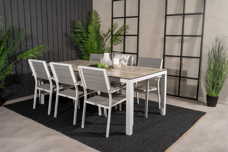 Venture Home Llama Matgrupp Utomhus 205cm + 6 Levels Stapelbara Matstolar Vit/Grå
