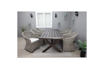 Utomhusmöbelgrupp 220 cm bord & 6 Belize grå stolar Brun