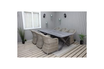 Utomhusmöbelgrupp 220 cm bord & 6 Merida naturell stolar Grå