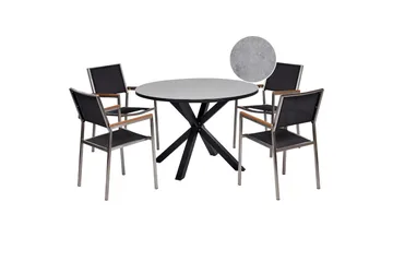 Utomhusmöbelgrupp Ø 112 cm bord & 4 Merida grå stolar Svart