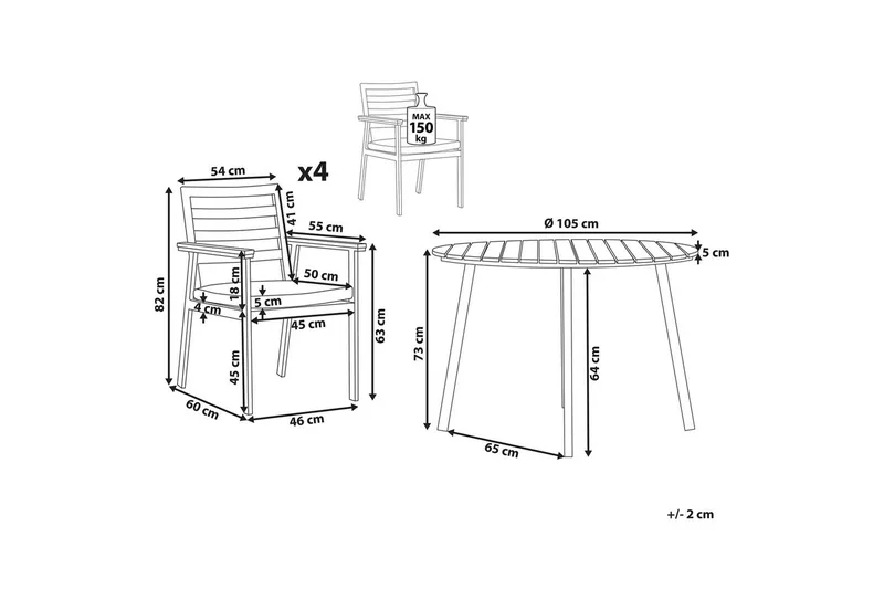 - Ingår i paket: Dynor,4x Stol,1x Bord