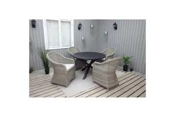 Utomhusmöbelgrupp Ø 112 cm bord & 4 Belize naturell stolar Grå