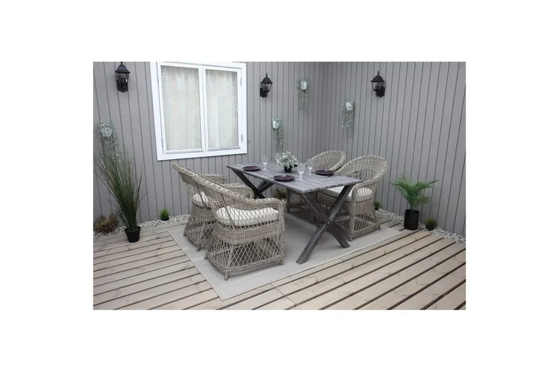 Utomhusmöbelgrupp 150 cm Bord & 4 Merida naturell stolar Grå Grå