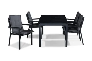 Lumpur Matgrupp Utomhus Rund 120 cm + 4 st Linero Matstolar Svart